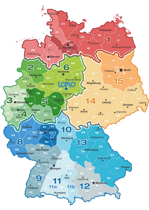 Our areas have grown historically and therefore exceed the borders of the federal states. The cities mentioned in the menu are the best known or largest in the respective area. Ideally, use the unique postcode search, or click on your area on the map.
