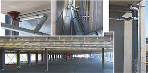 Due to the fact that the drainage in car parks is usually visible and the majority also within reach of the car park users, there are special requirements regarding appearance and security. Solid, galvanized LORO-X steel discharge pipes provide a long-term security against vandalism and impacts from the environment.
