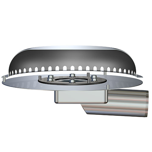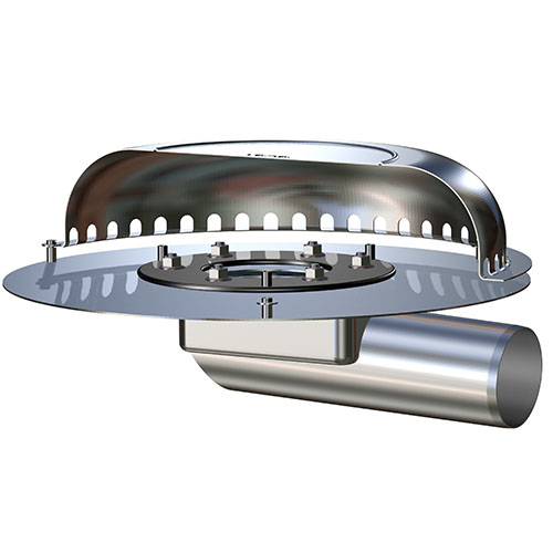 Komplettsystem LX2329-4Xmit Klemmflansch ohne Aufkantung LORO-X RAINSTAR Hochleistung Attikaentwässerungssystem, Serie 88 Distant ohne Aufkantung, für Hauptentwässerung mit Druckströmung, Abflussleistung 36.0 l/s bei 55 mm Wasserhöhe auf dem Dach, mit Klemmflansch, als Los- und Festflanschkonstruktion, ohne Aufkantung für Bitumen- und Kunststoff-Abdichtungsbahnen, Eingrifftiefe 106 mm, mit DRAINJET-Powerhaube aus Edelstahl, nach DIN EN 1253, Leistungsnachweis mit normgerechtem Prüfsystem mit 4,2m nicht belüfteter Fallleitung gemäß Systemdatenblatt LX2329, Ablauf aus Edelstahl, DN 100 Stückliste gemäß Datenblatt LX2329-4X: